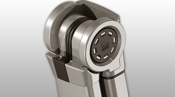 Sus partes móviles giran sobre bujes revestidos en Teflón, que aseguran la ausencia de ruidos producidos por fricción entre metales, por más de 500.000 aperturas.